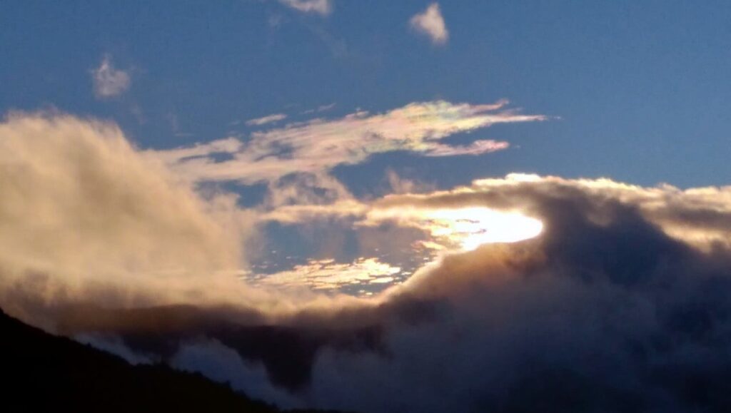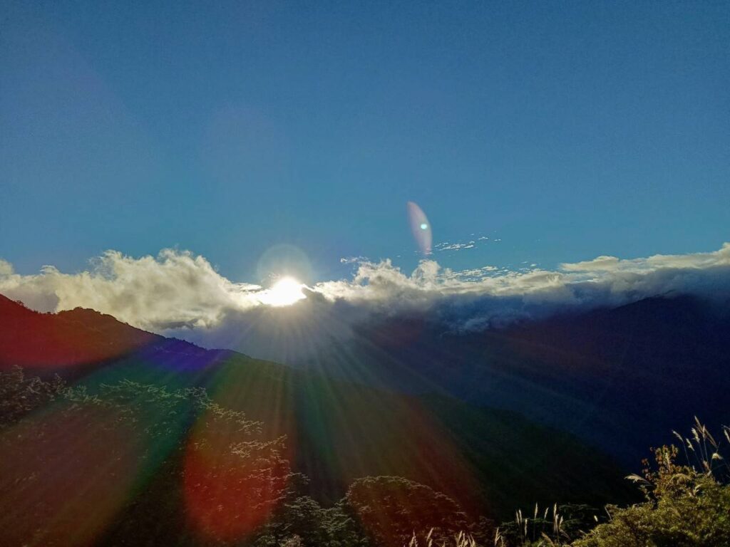 之後到了晚上在山上老天爺真不給面子在山上下綿綿細雨,期待半天的滿滿星空就這樣只給一層層濃霧的美景,原本想半夜凌晨出來與夥伴們一起看星星的喜悅就這樣飛了,之後隔天我們就跑到暗空公園那邊欣賞日出,幸好呀還有美美的日出可以看並且還看到流光雲船的表演有夠美的,之後我們跑去小奇萊步道那邊轉女神漩渦與高山大地合一錨定女神能量擁抱大地,在那裏還能聽到許多鳥語歌唱喔好療癒呀~