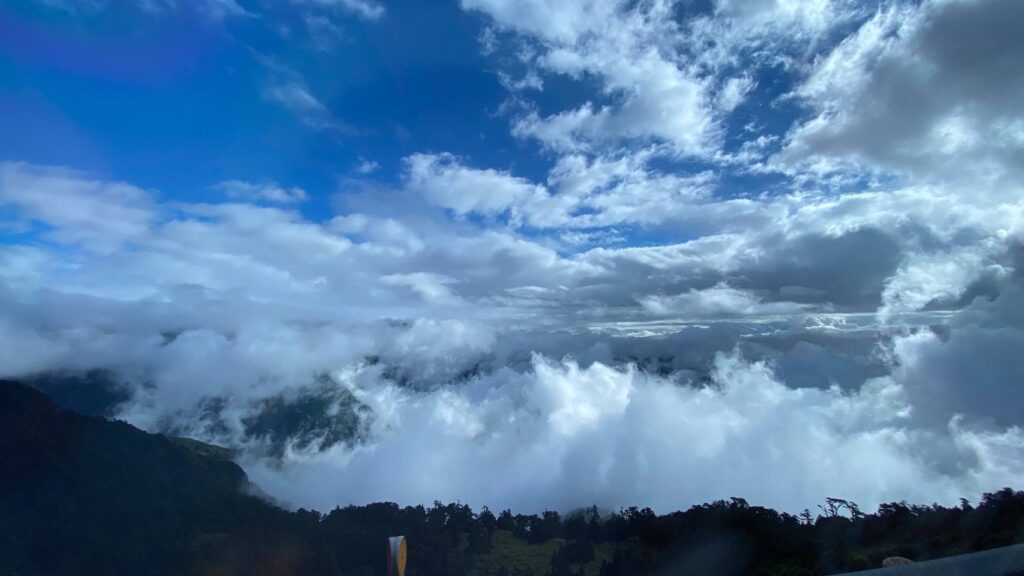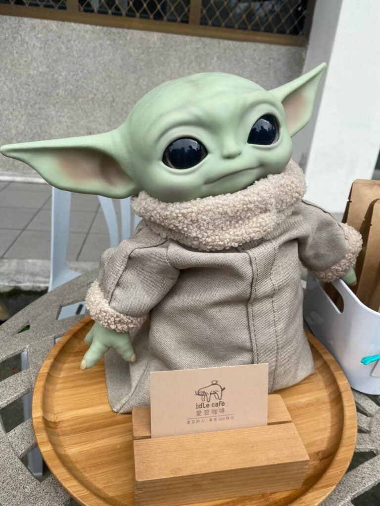 然後上山的過程中山的美景與雲海簡直進入仙境般的美麗,可惜的事小弟沒有翅膀不然真想展翅高飛躺在仙境中的雲海裡遊玩,這個仙境般的美有如天堂般風景,我眼睛簡直超享受,前不久嘴巴享受現在換眼睛與感受享受,簡直令人陶醉………….😍😍🥰🥰🥰,之後到達帳篷時我眼尖看到旁邊賣咖啡的餐車旁邊有擺放尤達寶寶,我感動的不得了,彷彿原力指引著我們般地來到合歡山般的,我不是在作夢吧!!這時心想,耶 ~ (酷酷的心理說)願原力與你同在😂😂😂,之後下車我就興奮衝去看尤達寶寶還跟夥伴們照,那尤達寶寶還會發出聲音說,並且擺放尤達寶寶桌子有神聖幾何與玫瑰圖騰真是嚷我興奮得不得了,超讚,還跑去跟尤達寶寶的主人聊了一下順便跟他們點些飲料,開心極了並且啊這間的咖啡熱可可超級好喝的說~~😍😍😍