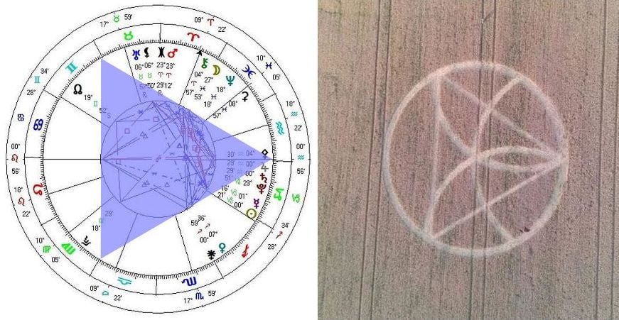 第二個麥田圈的主題是12月21日出現的木土大合相以及同時出現的星象組合: