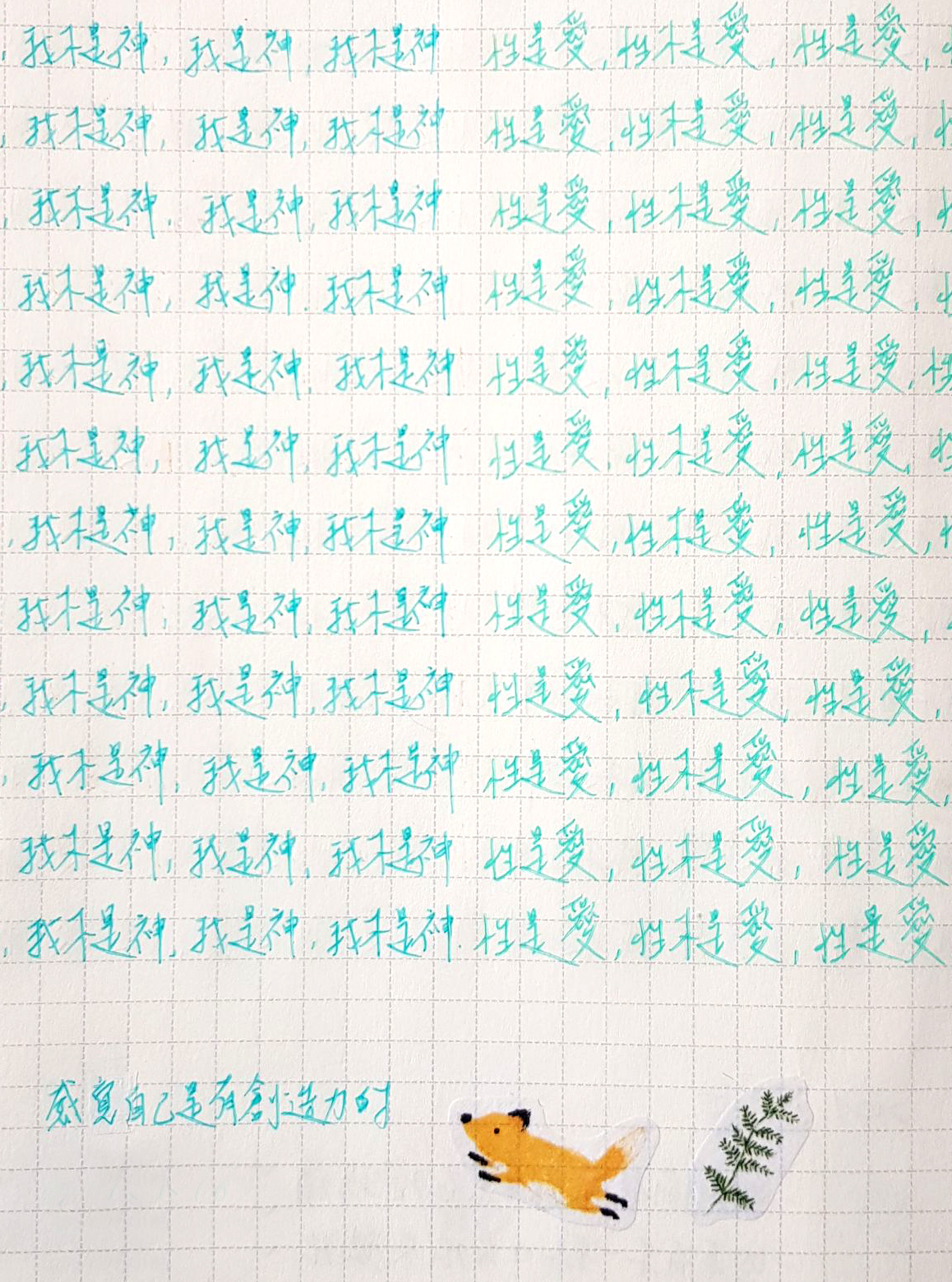 因為是自己的”功課”,所以寫得快慢由自己決定,時間長短也自己決定(當然至少還是要寫10分鐘),不會被批評字寫得端不端正、好不好看(當然,放上來的照片還是要挑上相一點的😂),只是單純的享受寫字的過程、和自己獨處。對我來說,寫字的過程中所獲得的平靜與自在是最開心的事情,同時也能夠更加的覺察到腦海中的每一個念頭是什麼,從而進行調整或清理。