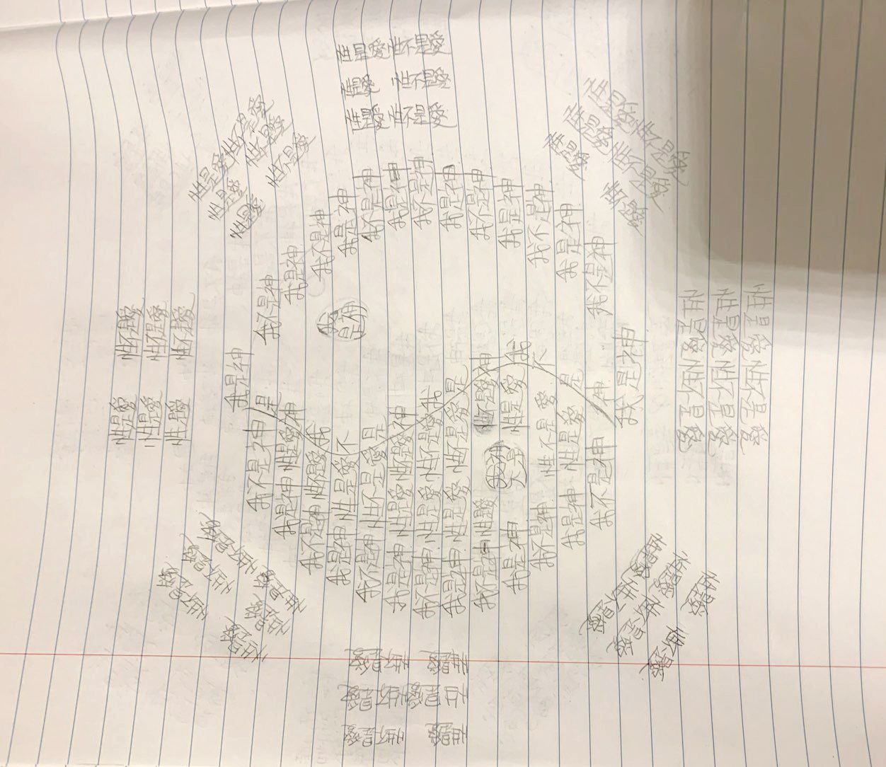 3. 我不是神>>憤怒。握筆用力、肩膀僵硬,為自己不是神而感到生氣。