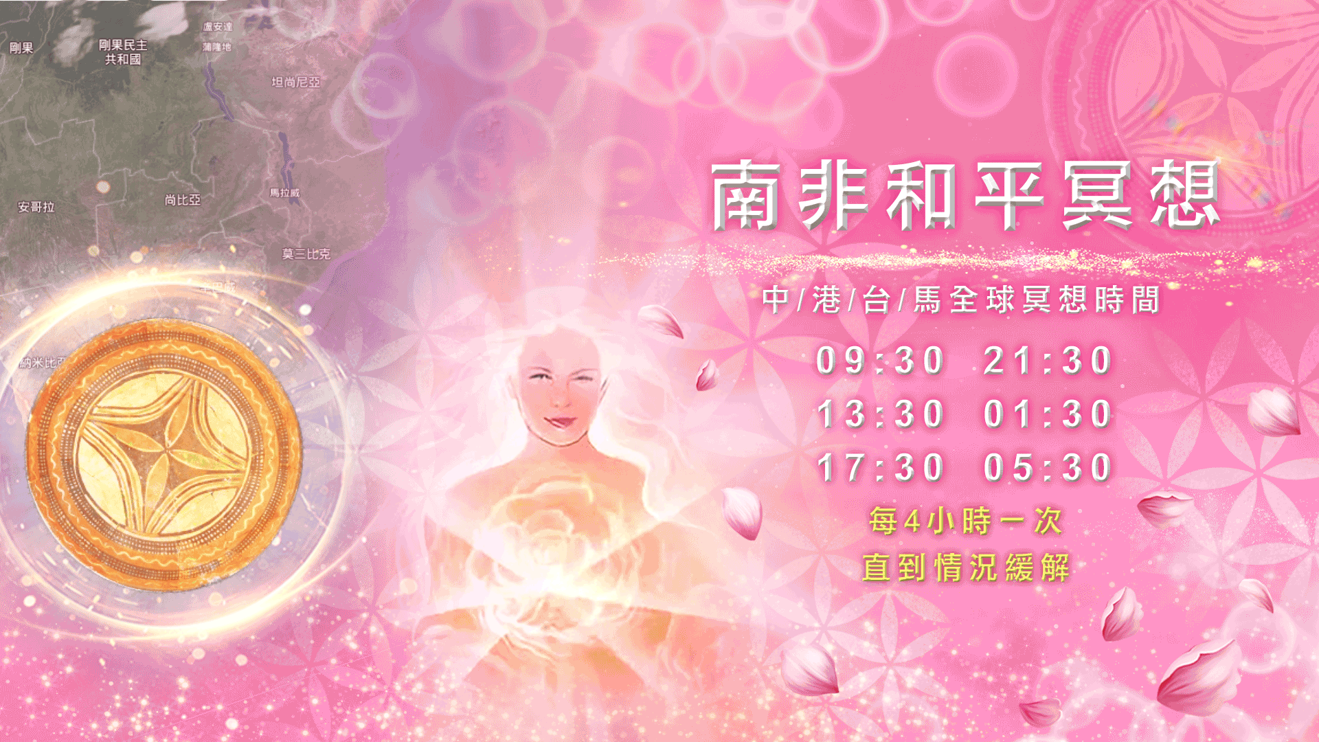 我們要為南非舉辦每4小時一次的和平冥想。我們要觀想南非國內的暴動和騷亂和平落幕,社會回歸正常。