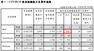 台灣截至8/10因施打疫苗的死亡人數已達598例,此種死亡人數的大量增加,也是現在施打新冠疫苗後才發生的情況,過去施打傳統疫苗時,似乎未見有此情況的發生。