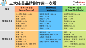 此處有資料彙整了目前台灣所施打的不同疫苗品牌的副作用: