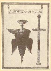 我來到一個有40道火柱的大廳。 其中一邊的柱子發出明亮的白色火焰。另一邊的柱子發出陰暗,偏黑色的火焰。大廳中間有一個蛇造型的祭壇。 牠身上綠金色的鱗片反射著周遭的火光。牠的雙眼像紅寶石一樣鮮紅。蛇形祭壇上方掛著一幅銀色光澤的銘文,旁邊還插著一把造型華麗的寶劍。祭壇上還放著一個杯子……我聽聖靈們的合唱。一個聲音對我說:”你的考驗即將結束。拔起寶劍並且粉碎那隻蛇吧。”
