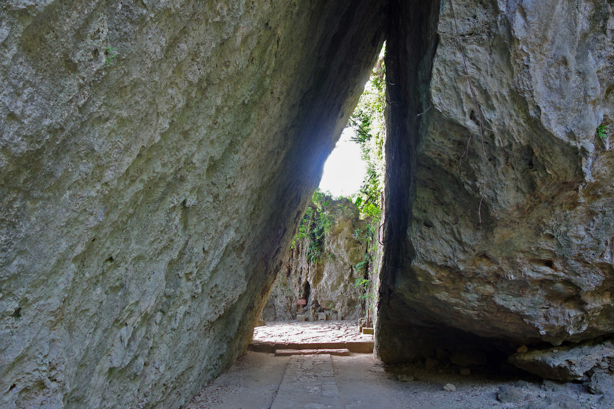 國王巡禮祭祀之地: 三庫理是由兩個岩壁組成的三角形空間,同時也是齋場御嶽當中最具代表性的Ibi (神域) 。