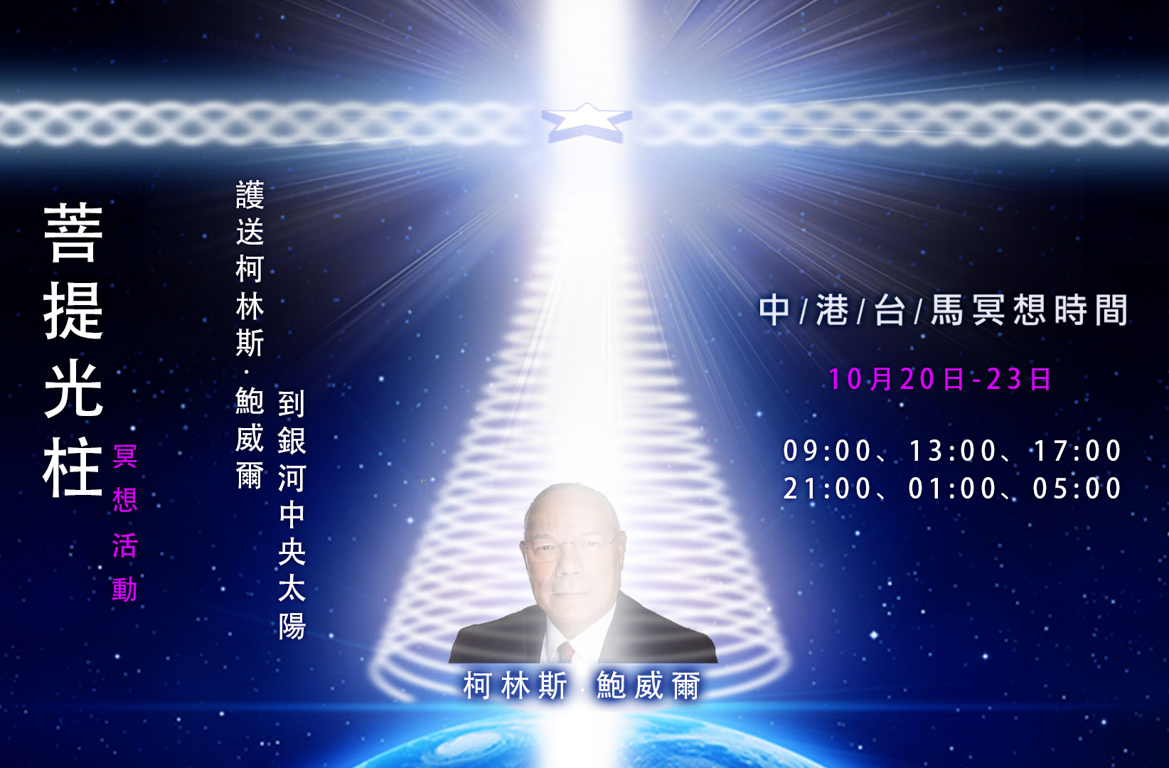 護送柯林斯·鮑威爾到銀河中央太陽的冥想活動(10月19日~10月23日 每4H一次)