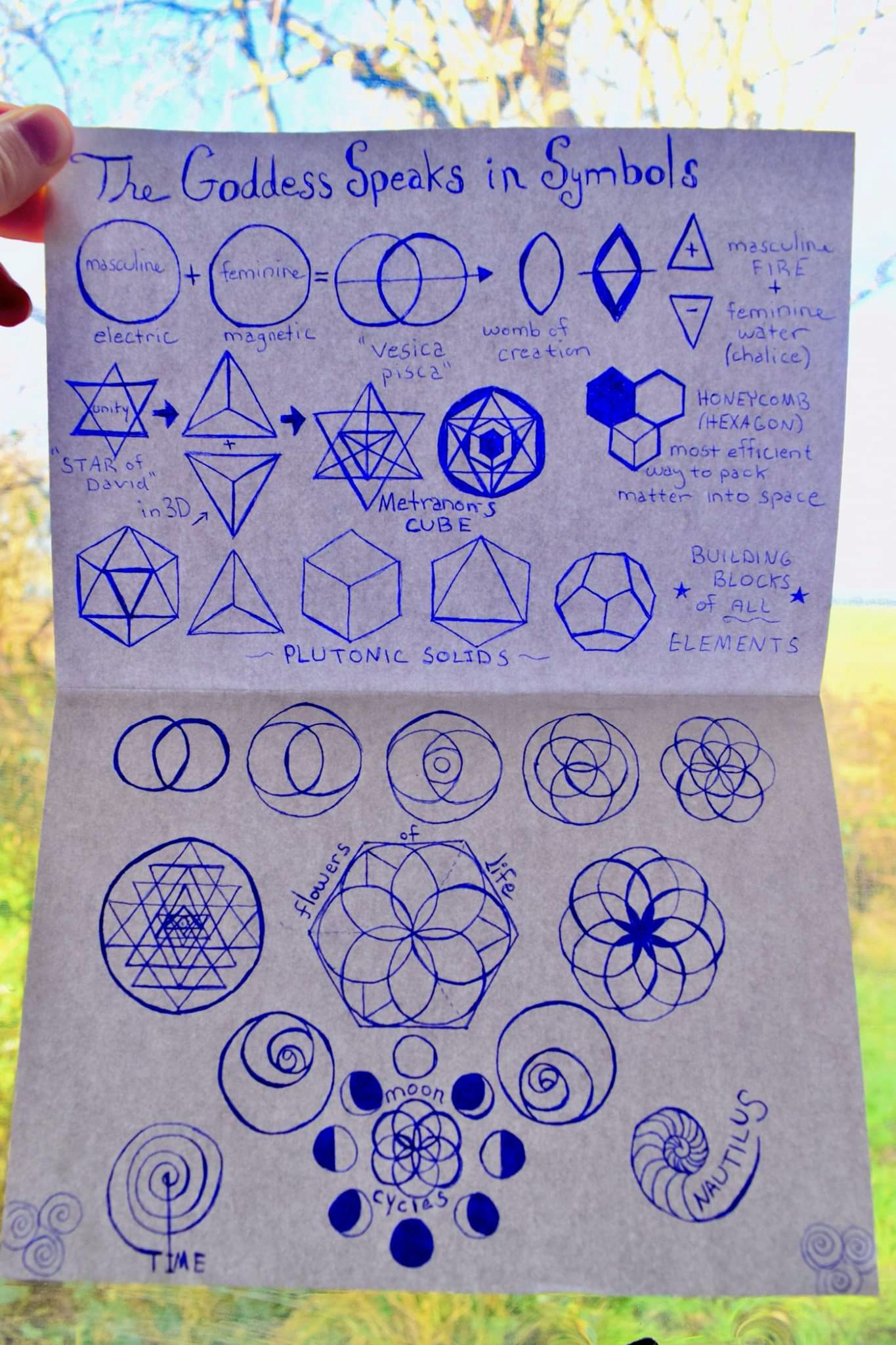 大多數地球上最古老的神廟都是祭祀供奉女神,像是知名的愛爾蘭考古聖地、土墩結構的世界遺產-博因宮,還有位於馬爾他的哈爾·薩夫列尼地下宮殿,這些建築設計都與110赫茲共振,古老的神廟中到處可見幾何圖形、字形與螺旋符號,全都是女神的語言,代表神聖女性的意識。對女神文化來說,這是一種與現代不同類型的意識,她們是字母系統的前身。神廟中所見的符號、螺旋和字形都是為了與能量頻率相互調和的方法,進而提升到更大的宇宙智慧層面。