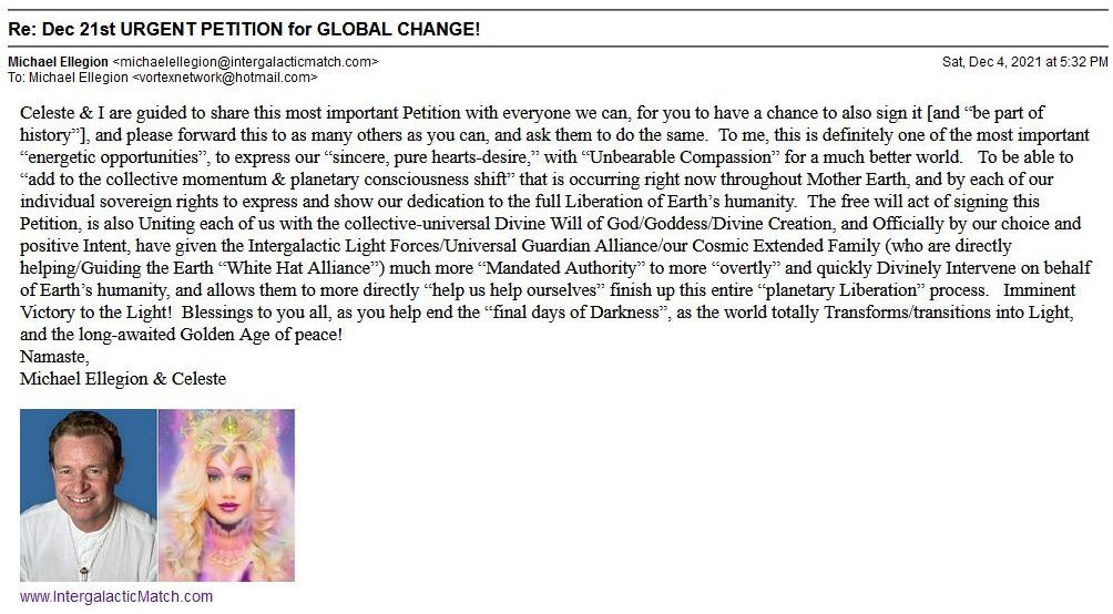 Time is slowly approaching for the Divine Intervention Activation and the energies are rising as we are gaining momentum. For the Planetary Liberation Petition, the critical mass of 144,000 signatures is almost guaranteed, and for the meditation on December 21st, thing are looking good as well.