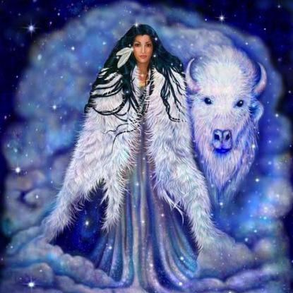新時代小孩都知道:當白水牛降生地球之後,人類就即將進入銀河時代。接著就是跟星際家人見面。他們就要負責新舊世代的平衡。很久以前,我聽過一個傳說。兩個印地安男人走在路上看到一隻白水牛。其中一個男人看到白水牛化身成很漂亮的女性,然後就昏倒了。第二個則是看到了白水牛女神,而且回想起自己的人生使命。白水牛女神就給他一支和平煙斗。很多部落的薩滿都會訓練自己,準備接下白水牛女神的任務。