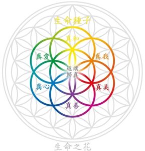 原先的人格三位一體力量(真我、真愛、真善),再加上神聖小孩的純真心性所蘊含且與前者相映襯的三位一體力量(真心、真美、真和),若將這六個力量都視為象徵圓滿及完整的圓圈,就會形成生命之花(最和諧的時空基礎結構)的雛型,這個雛型又被稱為「生命種子」,是互相調和的力量所共同塑造出來的原始生命力──這原本都是潛藏在神聖本源的合一之光當中,直到這份合一之光來到物質層後,才進一步顯化出這六大面向的力量,也讓高我靈魂在物質層當中,有辦法透過六大面向的力量來調和、療癒所有陰暗面,當所有人都能綻放內在那圓滿的生命種子並互助合作,就能一起構成無邊際的生命之花神聖結構,完整顯化出所有靈魂都想要落地體驗的一切豐盛與美好,也就是「創造全宇宙的有形天堂」。