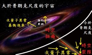 在2021年6月的那篇文更提到了「根據跨普朗克審查猜想,任何方式都無法偵測到次量子異常……就連揚升存有們也做不到這一點」,這是因為次量子異常只存在於普朗克尺度之外,然而構成這個宇宙的卡拉比-丘流形本身卻是普朗克尺度下的弦振動,因此由卡拉比-丘流形所構成的所有存有(包含揚升存有)都是受限於普朗克尺度──那麼要嘗試理解次量子異常,也就需要回歸到宇宙大爆炸最初的那0到10−43秒之間的「合一」時期,因為這段時期就是發生在普朗克尺度之外,由超光速粒子統一全宇宙的階段。
