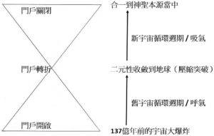 實際上,所有這些門戶(或稱機會之窗,包含開啟、轉折、關閉的過程),都可以說是一次循環週期,都是在更小的尺度上反映著神聖本源在這個宇宙的大呼吸(宇宙循環週期),如同下圖所示。