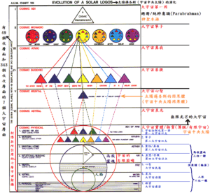 那麼,當我們將這整個宇宙視為神聖本源的「身體」,大尺度纖維結構是散佈在身體各處的神經,則宇宙中央太陽就是這個身體的中樞神經(大腦),我們這個宇宙(包含從物質層到宇宙法則層)其實都是位在神聖本源的合一大宇宙(Cosmos)的「大宇宙實體層」(The Cosmic Physical Plane)中,宇宙中央太陽(宇宙法則層)所展現的智能,則是源於更高的大宇宙層面,也就是位在「大宇宙心智層」(The Cosmic Mental Plane)的「宇宙中央太陽因果體」,在這個宇宙中央太陽因果體之上,則是無限的神聖本源(詳如下圖)。關於這方面的知識,尚未經柯博拉直接證實,而僅是筆者透過柯博拉曾經引用的七層宇宙架構圖的實際出處中,所找到的內容,有興趣的讀者可以參考筆者所寫的《宇宙能量層面的奧秘知識》系列文章。