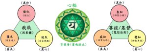 由於我執陰暗面是阻礙心輪全面活化開展的關鍵,這反映著「討好/迷失」、「否認/匱乏」、「僵化」這三個人格的防衛機制,其實都圍繞在與心輪有關的「愛與被愛」及「寬恕」的重大議題上,甚至與形成「光明及黑暗的二元對立」有關。以下開始進一步整理。
