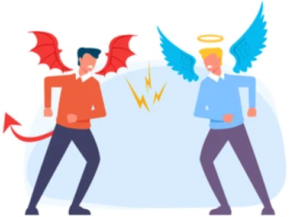 若以更直白的方式來描繪,我們討好的一面,會像是內心的小天使,看起來散發著光明,而否認的一面,則像是內心的小惡魔,看起來凝聚著黑暗──一個是少了某些實質核心的太陽(迷失),一個是不斷侵蝕生命的黑洞(匱乏),兩者的共同點就是「心的某些地方是空的」,因為在經歷苦難與創傷之後,「愛偏離了(不再能由衷地去愛與被愛)」,心輪的某些地方呈現封閉、破碎的狀態。