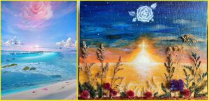 在下文開始之前,筆者先分享一個有趣的巧合,就在筆者上個月所寫的文章《聆聽靈魂3–生命的健康法則》的文末,與讀者分享了筆者所畫的《玫瑰.十字.復興》,而在這個月柯博拉的更新當中所使用的圖,似乎就與筆者的這幅畫相呼應,都有著上方的玫瑰、中間的光輝、下方的海洋與大地的構圖。
