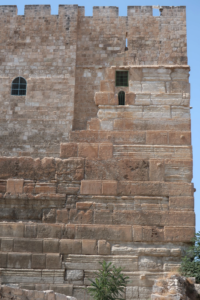 根據1852年羅賓森先生的觀察。與巴勒貝克相比,耶路薩冷的巨石結構也相當讓人驚艷。位於耶路薩冷的舊宗教聖地聖殿山,它是一座平坦的梯形廣場,四周環繞著希律王時期打造的石牆。北面端和西面的石牆同時隱身在居民的建築體中,東面端石牆的位置為西北方7.5度,總長為1530英尺。西面端的石牆,包含了著名的哭牆在內,長約1560英尺位置為西北方11.5度,位於南端的石牆稍微超過900英尺長,與西側牆面成直角。與南方端的古老石牆結構和哭牆; 和在西南角和東南端角的磚石結構比較下,給我們留下強烈的印象,這些石牆結構比例比原在北方的時期還更早,與其說是這樣,這些南方與東南端的石牆磚石呈現了比其他砌牆更古老的存證據。