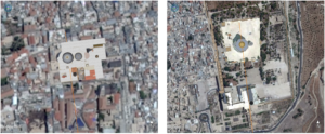 圖示:耶路撒冷的圓頂教堂(圖上)和聖墓教堂(圖下)的3D模型皆是以古城佩特拉的方向定位的。(谷歌地球)