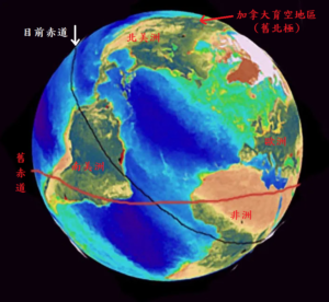 每次極移都會伴隨赤道線的改變,而在9萬年前的那次極移發生之前,當時的北極點從12萬年前開始就位在白令海附近(參見下方第一個網頁),相對應的赤道線就是橫跨了北美洲、歐洲與中東;後來北極點開始往格陵蘭方向移動,若按此移動途徑來看,就會來到加拿大的育空地區,而以過去的科學研究得知,在加拿大育空地區的北極點也是大約存在於12萬到9萬年的這段時期(參見下方第二個網頁),所相對應的赤道線則是橫跨了南美洲與非洲: