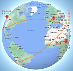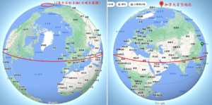 此參考圖的北極與赤道線只是大致呈現,非準確位置
