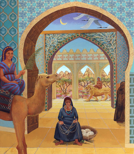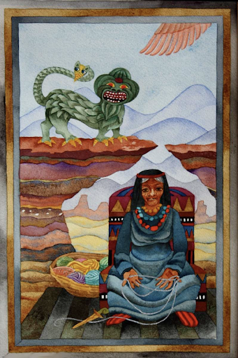 阿特拉是在薩爾曼.魯西迪所著的《撒旦詩篇》中提到的阿拉伯女神之一。她是來自敘利亞的月之女神,阿特拉女神除了在阿拉伯北部有廣大的信仰之外,女神的崇拜也擴及西奈山區域。阿特拉女神常以騎乘駱駝的形象出現,女神也與法蒂瑪之手、新月、和夜空的星辰相關。這三位女神也被稱作「崇高之鳥 」或「高飛之鶴」,讀者們可以在我的畫中看見盤旋於女神頭上的鶴鳥。