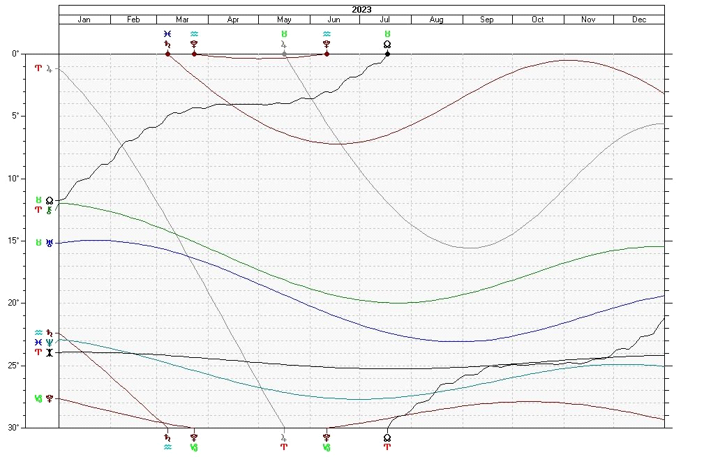 The first major astrological event is that Pluto enters Aquarius in March of 2023. This will change many things on the Earth. Neptune will enter Aries in 2024-2025. Uranus will enter Gemini in 2025. These three outer planets will change their astrological signs at about the same time. They will together create a beautiful sextile, a harmonious aspect in astrology. This astrological configuration will lead to a new Renaissance.