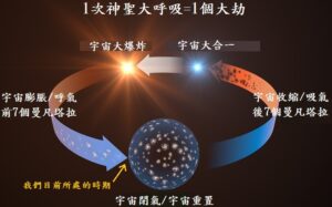那麼我們就能開始進入到本節的主軸,柯博拉在今年的台北揚升會議提到,我們目前正處在第7輪的宇宙循環當中(關於這部分的訊息,筆者還尚未找到書面紀錄可供引用,但有在這次會議上親耳聽到),這裡所提到的「第7輪」,有可能是指這137億年(宇宙膨脹)以來的「次循環週期」(在宇宙大呼吸當中的小週期),這個次循環週期在祕法學中被稱為「曼凡塔拉」(Manvantara,是Manu和Antara的複合詞,Manu是負責眾生演化的神靈或始祖,Antara是生命週期或間隔,所以曼凡塔拉的意譯為「始祖引領眾生演化的週期」):