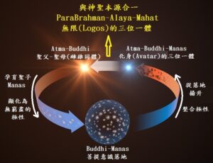 直到下一個宇宙作為「聖子(The Son)」再次被孕育出來,新的曼凡塔拉(Manvantara)宇宙循環被啟動,「雌雄同體」才開始在宇宙當中顯化成為「靈性與物質」的二元極性(聖父顯化為靈性,聖母顯化為物質),並且以這道二元極性為媒介,神聖本源透過原初電光(Fohat)在宇宙中建構出如彩虹般的宇宙七大層面,而這其實是「連結靈性與物質的彩虹橋」的由來。