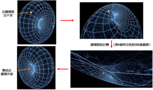 下方影片所呈現的是克里福德環面(Clifford Torus)的動態示意圖,若讀者仔細觀看,可以發現隨著這個環面的運動,它的「內部」會變成它的「外部」,換句話說,原本看似出不去的封閉空間(圓環內部),在克里福德環面的運動下會轉化為開放式空間(圓環外部)──也就是說,當更高維度的能量得以投射進入落地世界時,將能夠打破主要異常的封閉系統: