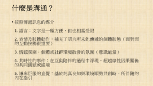 有時候我們常常覺得我都有跟他說了為什麼他還是這樣,認為說了就是溝通,透過這個主題的分享,讓我們能夠更加了解溝通,除了可以透過語言、聲音音量、肢體、臉部表情