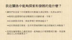 因為當我們足夠理解自己之後,比較有辦法在溝通的過程中相對完善的去做表達,表達清楚自己的經歷感受、表達清楚自己的經驗立場、表達清楚自己想要什麼?不要什麼?什麼事情讓自己不舒服不平衡?而不舒服不平衡的原因是什麼?
