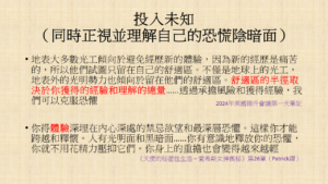 因此,我們的揚升、地球的揚升、宇宙的揚升,不僅僅是對於自我的理解與整合,更是需要有著對於各種未知小宇宙也要嘗試進行理解與整合的體認(跨出舒適圈,謙卑地投入到未知當中),進而基於健康踏實的互動而交織出生機蓬勃的生命網絡,這正是神聖本源在永恆的精神與物質之間進行神聖結合的過程中,所會共構出來的細緻而無窮盡的體現自我之路。