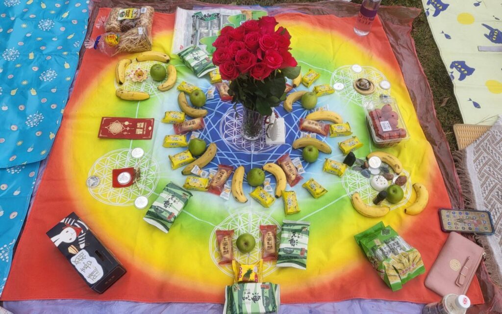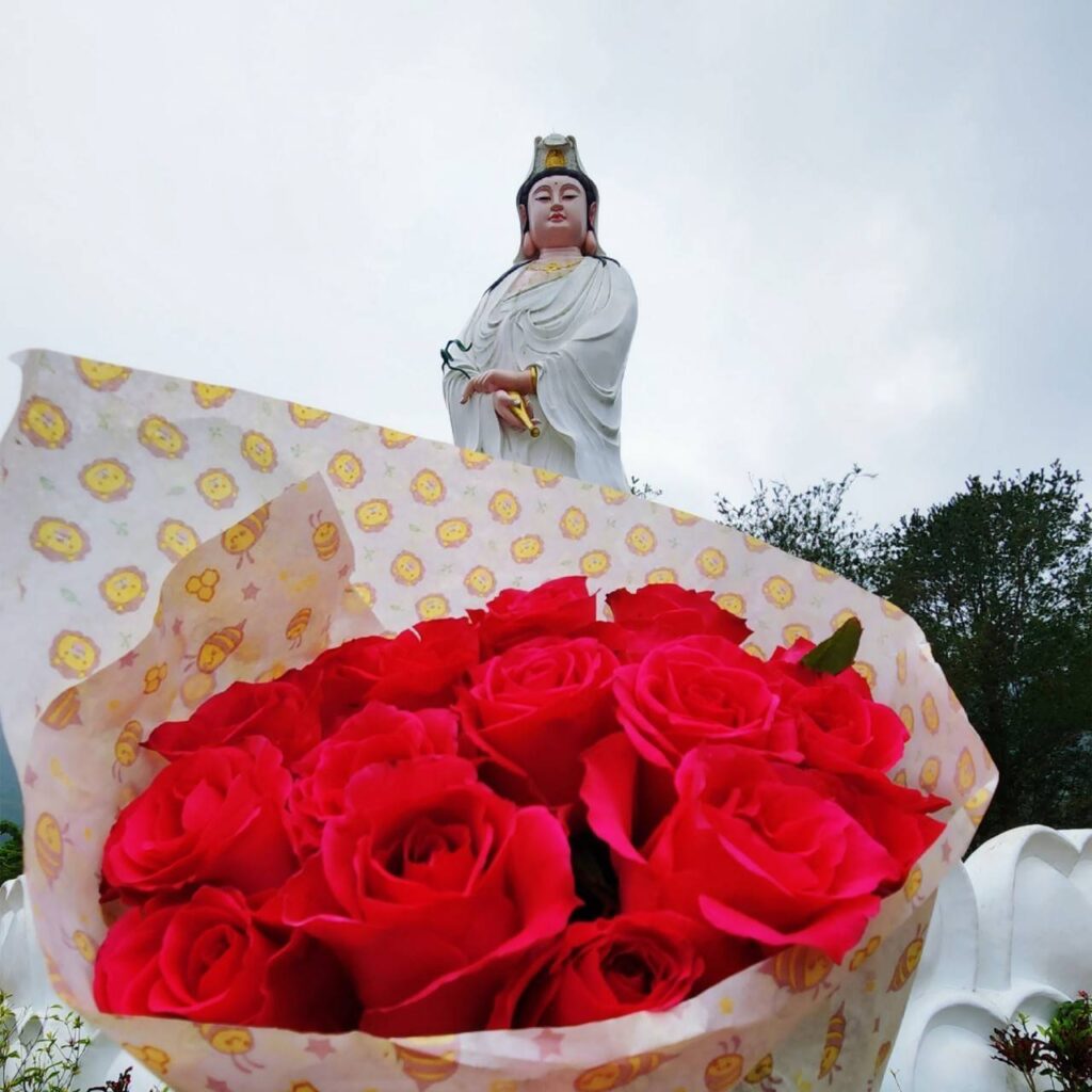 除此之外,登山前我們在觀音像廣場及觀音神尊前同步正午12點做彩虹生命之花冥想,如此靠近觀音女神偕同為地球祝福,有夥伴再仰望觀音仿佛正微笑看著世人,大家心情都很歡喜😄