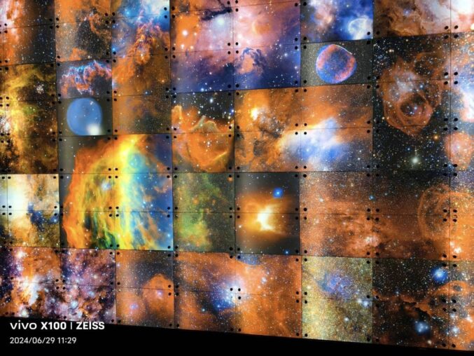 而後,我們進入了展示場,直奔二樓的銀河系牆,靜下心來站在那裡,彷彿身處宇宙中,被星雲、星團包圍著!中間還有個面板,介紹所有梅西耶天體,欣賞璀璨星體的同時,也學到了一些天文知識。