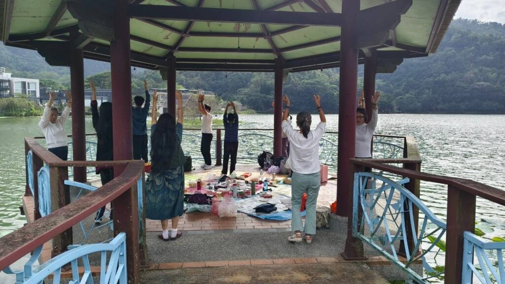 鯉魚潭的好天氣,讓今天的聚會前的野餐時段、聚會時的多個冥想工作,都很順利且舒適,這次終於順利能帶大家一起玩遊戲,為了這難得的時刻,我又特別設計了新遊戲,看著大家在遊戲時驚喜、慌亂、傻眼、哄堂大笑的畫面,這就是我最喜歡帶給大家遊戲時,處於當下的歡樂感😃,謝謝每一位參與的夥伴。