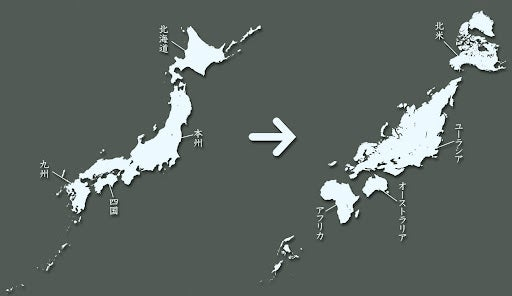 更有趣的是,日本群島就像是世界七大洲的縮影。北海島的形狀非常像縮小版的北美洲,日本本州的的形狀非常像縮小版的歐亞大陸。日本的四國非常像縮小版的澳洲。九州的的形狀非常像縮小版的非洲。