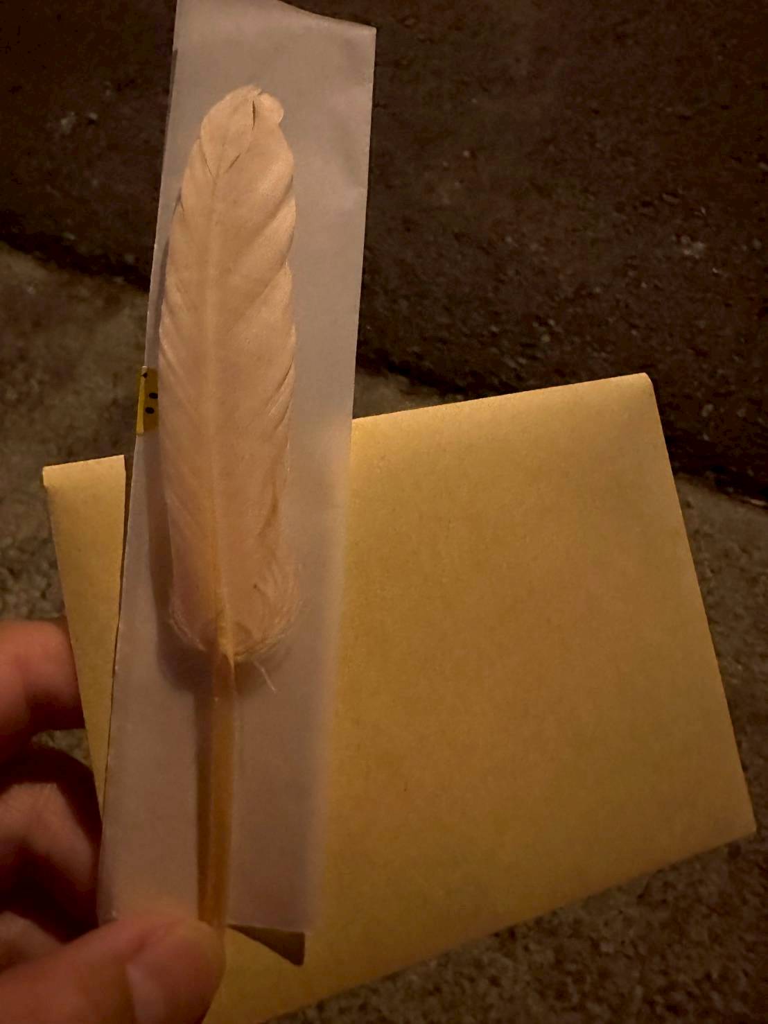 我收到的祝福是一根黑色羽毛以及這樣一段話: