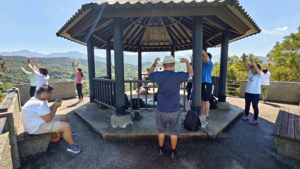 早上來到山頂的八卦亭,群山環聚 綠意盎然 視野遼闊,看的心花怒放,大家對景色都讚嘆不已👍