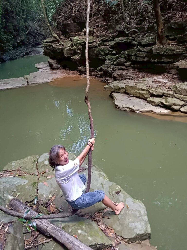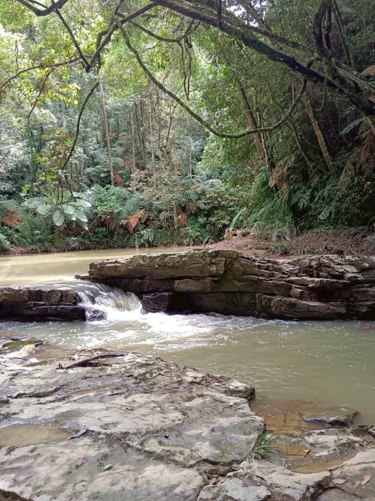 做完冥想+午餐+分享後,續走約4公里2.5小時的步道,雖烈日當空然沿著溪流走在草叢樹林間,清風徐來清爽至極,幾座小橋、小潭水、大潭水,還有ㄧ路上野薑花的香氣伴隨,沿路就陸續聽到有人說還要再來😁