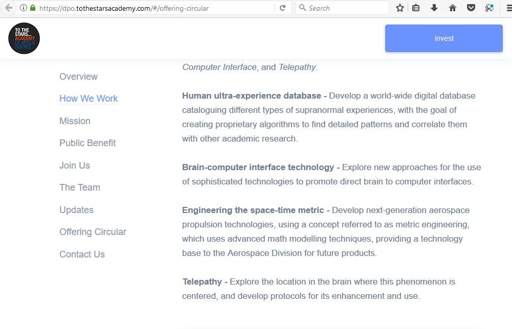譯註: 湯姆・迪朗格在10月11日發表他最新的創投計劃-星空科技&藝術學院。這個學院正在進行這些專案:人類超自然經驗資料庫、人腦-電腦介面科技、時空航太推進科技和心電感應