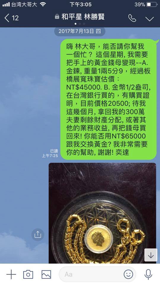 *陳奕達曾提供等價黃金,與和平星商討暫時交換現金,此舉卻因此成為和平星以各種失序攻擊的標的。