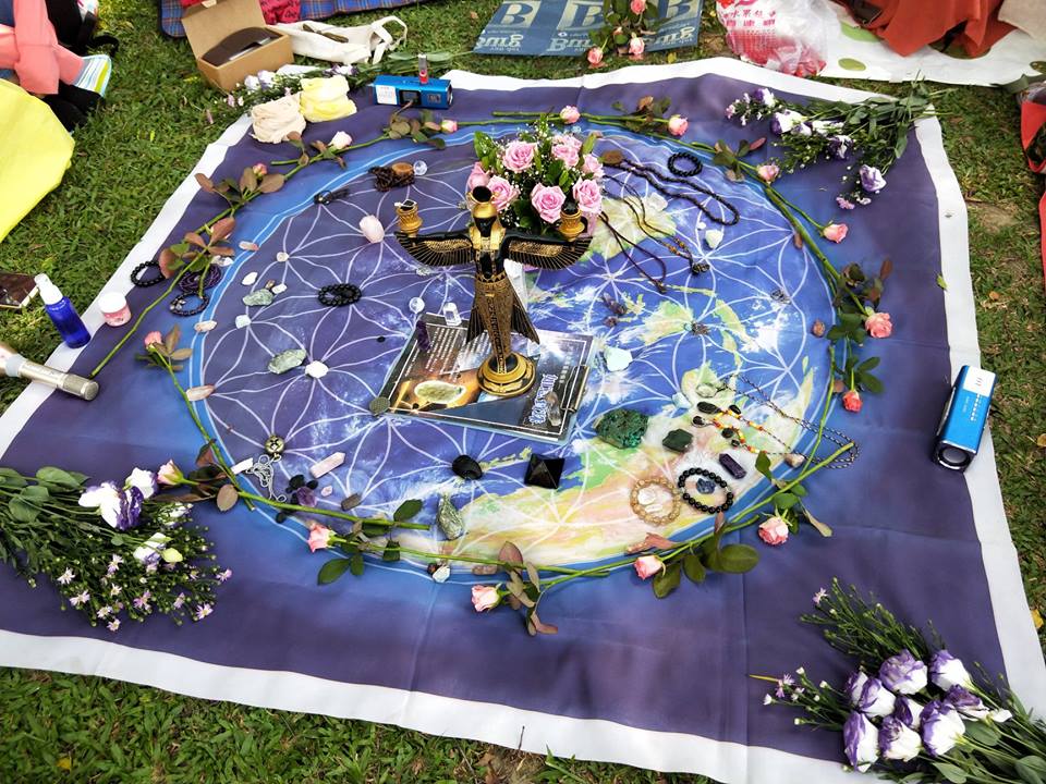 活動一開始,由我導讀女神回歸的重要性、薔薇聖女團的源起與目的及COBRA回應的常見Q&A(這實在太適合我了),接著,人手一隻玫瑰花,依順時針方向圍繞聖壇布擺放形成一個優雅玫瑰花圈,我們以此儀式連結女神與我們同在,MAX說這是他舉辦5年的聚會中最美麗的聖壇。
