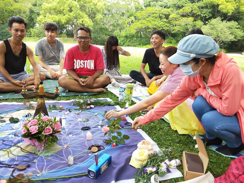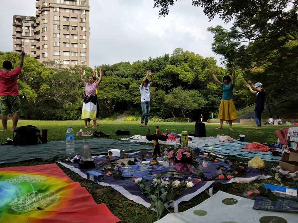 彰化天育講堂改造工程持續進行,6/10中區、雲林地聯合實體聚會舉辦在戶外-台中科博館植物園旁的大草皮,依揚升會議Cobra的號召與內在指引,中區的實體聚會結合薔薇聖女團運作,這次是中區第一次舉辦的薔薇聖女團聚會,女神回歸帶來愛與和平,我們是光的力量匯聚,13:30活動才開始,無畏正中午的炎熱,在這之前,好幾位夥伴已陸續抵達植物園,沐浴在植物圍繞的大自然中。
