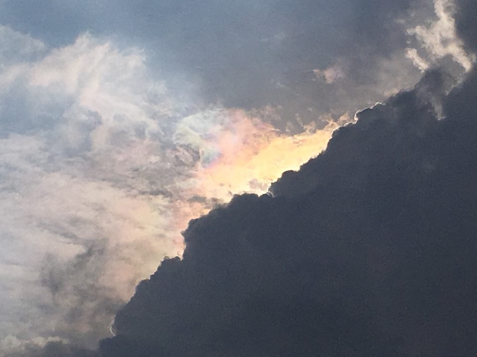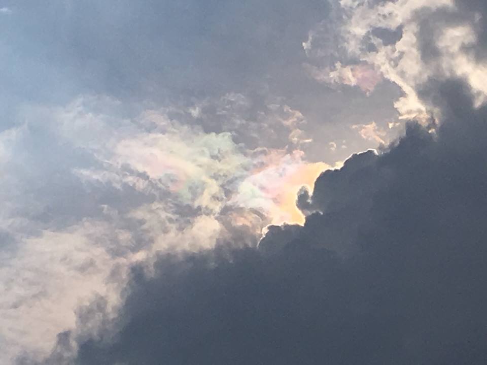 在植物園聚會都有驚喜!!! 3:00的例行冥想接續往常的交流談心,而遠望天邊已經烏雲密布,與上面很有連結的諺子分享時,請大家出去看一下天空,挖塞:天空開了一半的晴,在聚會這一側,船艦雲、彩虹流光雲,天上家人們都來了,大夥驚喜連連看得目不轉睛,親眼看著流光雲的變化(這根本就是特別現身給我們看的),我們的驚喜也影響到周圍的民眾,有2位民眾好奇著我們的聚會而進一步詢問,看來,又有潛在光工覺醒了。