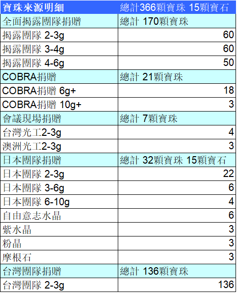-21顆大型超光寶珠:來自COBRA台北揚升會議現場捐贈