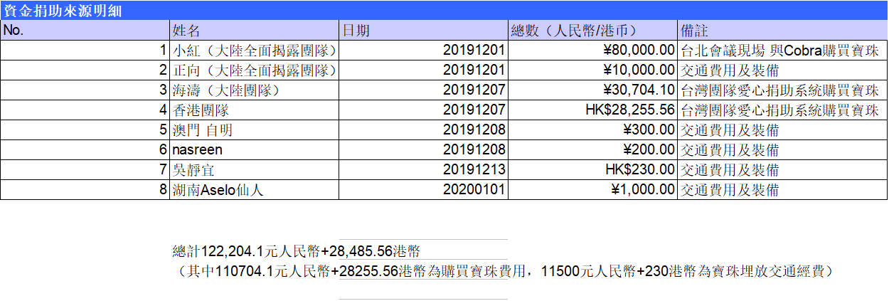 (其中8萬元在台北會議現場 與Cobra購買寶珠,1萬元交予XianggangIGAG團隊作為埋放寶珠交通等費用)