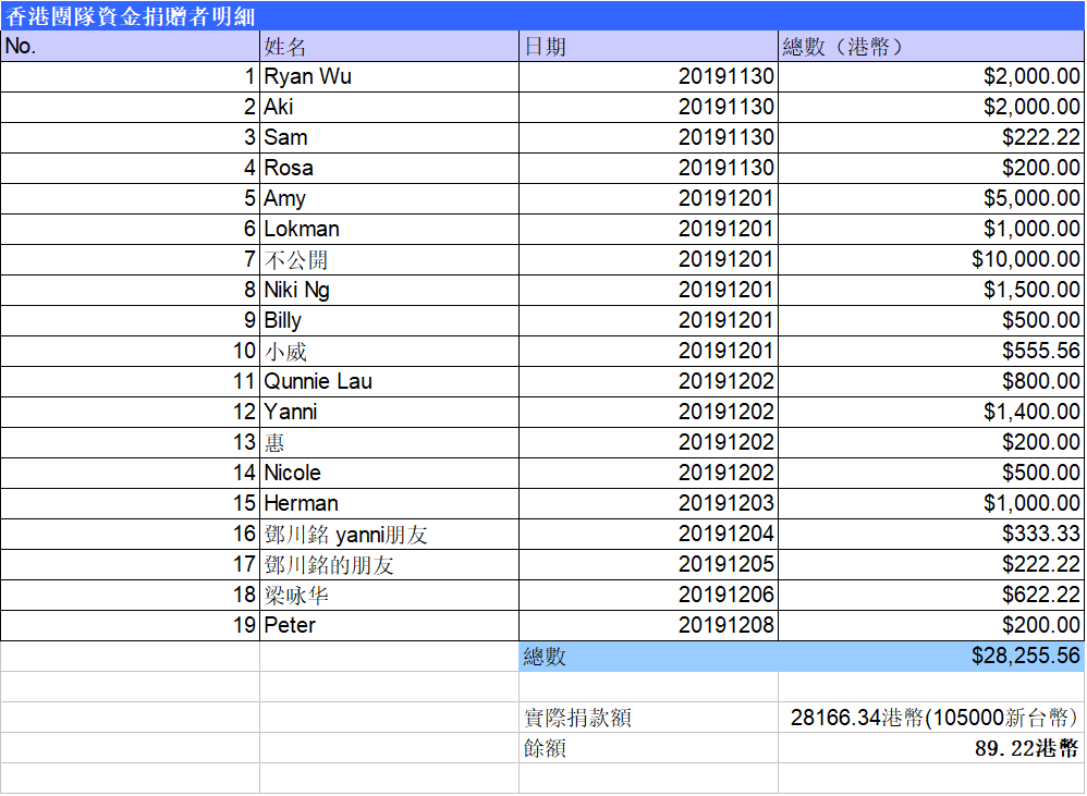 餘額約696.8港幣,將作為Xianggang團隊日後運作經費