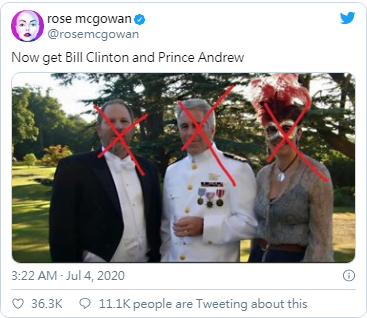 溫斯坦目前在獄中服23年的期刑,但麥高文認為這三人都只是廣大犯罪網路的一部分而已。她在推特下的標題:“現在輪到比爾·克林頓和安德魯王子了”。