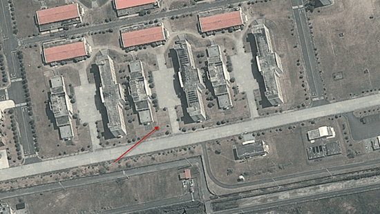 紅色箭頭是鳥瞰圖中幽浮的位置。